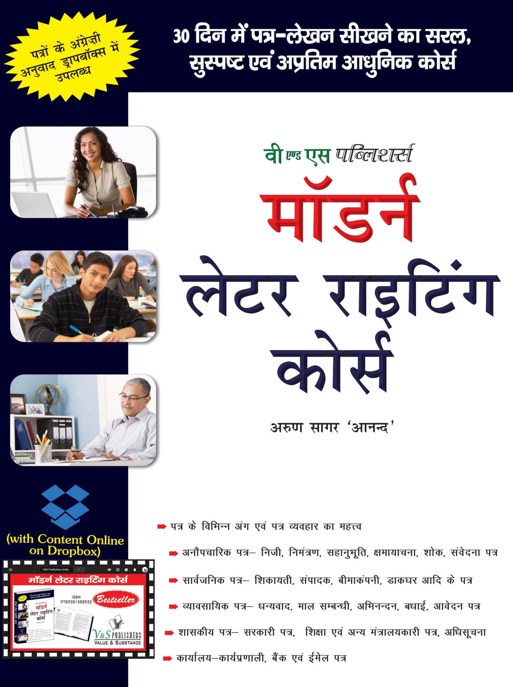 Is Pustak me saral avam vyavharik hindi me patra vyvhar ke lagbhag un sabhi prakar ke patro ko samahit karne ka prayas kiya gaya hai jisse vyakti apne swjano tatha samajik karyo ke liye hindi me patra vyavhar kar sake prastut pustak Modern letter writing course matra 30 din ka course hai pustak ke saath muft (CD) Bhi di ja rahi hai jisme hindi me diye gaye patro ka angregi me anuvaad bhi hai is pustak me anopcharik patra ( Parivarik patra, sage sambandhi avam mitro ko likhe jane wale patra) tatha opcharik patra (sarkari, gair sarkari tatha, ardh sarkari prathna patra, sampadak ko patra avam vyavasayik patra) samahit hai Hindi me patra lekhan sikhane ke liye yeh ek atyant upyogi pustak hai (This book contains a list of different types of letters which are used for personal and professional purposes, in easy and understandable hindi language. The book is a Modern letter writing course mantra of 30 days and is available with a free CD consisting of english translations of the letters. It contains a list of infromal letters( letters to family or friends) and formal letters( official letters, demi-official letters, letters to NGOs, letter to editor and business letters). It is the best book available in the market that helps students to learn letter writing.) #v&spublishers